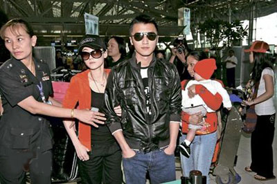 在曼谷期間,霆鋒除了拍戲便陪妻兒,更一家三口拜四面佛。他們的行蹤低調(diào),連日來傳媒也未能“埋身”采訪。昨日霆鋒一家三口高調(diào)返港,他們在4時許抵機場,現(xiàn)場有警員護駕。