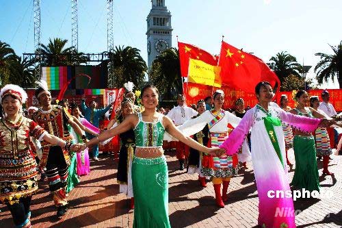 組圖:海外同胞支持北京奧運(yùn) 護(hù)衛(wèi)圣火傳遞 (7)