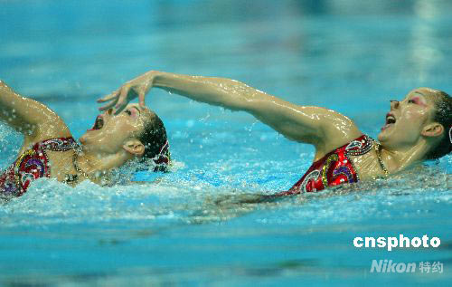 圖:花游奧運(yùn)資格賽中國姐妹花成功首演(2)