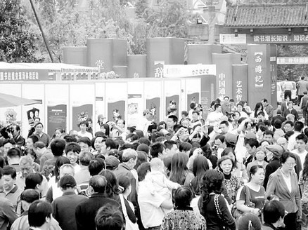 日前,記者在成都市浣花溪公園舉行的“迎接4·23世界讀書日”市民讀者大游園會上看到,活動現(xiàn)場人頭攢動、摩肩接踵!皻v屆諾貝爾文學(xué)獎獲獎作家作品展”、“圖書封面藝術(shù)設(shè)計展”、“電子圖書DIY和掌上閱讀體驗”等一并與成都市民見面。