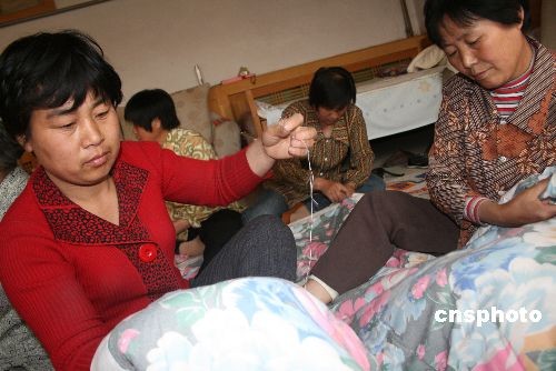 組圖:山東博興農婦趕制被褥捐災區(qū)(2)