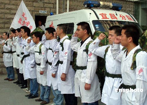 2008年5月19日,湖北宜昌市衛(wèi)生局、宜昌市疾病控制中心組建的首支衛(wèi)生防疫隊(duì)整裝宣誓,啟程奔赴四川地震災(zāi)區(qū),他們將在地震災(zāi)區(qū)從事環(huán)境衛(wèi)生消毒、疾病防控工作。