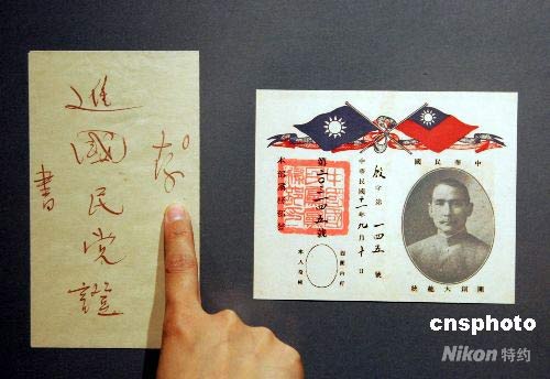 “宋慶齡的中國(guó)國(guó)民黨黨證”在上海亮相