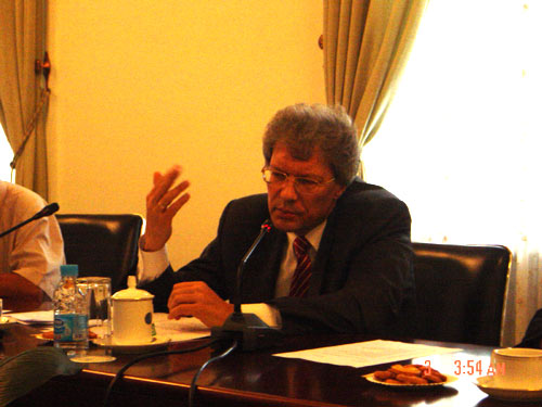 3日下午,俄羅斯駐華大使謝爾蓋·拉佐夫應(yīng)中國(guó)國(guó)際問(wèn)題研究基金會(huì)之邀,圍繞誰(shuí)是格俄沖突發(fā)動(dòng)者和受害者、沖突的由來(lái)、沖突的國(guó)際背景、俄承認(rèn)南奧塞梯和阿布哈茲獨(dú)立的法理依據(jù)、國(guó)際社會(huì)反應(yīng)、沖突前景等七大問(wèn)題在基金會(huì)發(fā)表演講。中國(guó)國(guó)際問(wèn)題研究基金會(huì)理事長(zhǎng)、上海合作組織首任秘書長(zhǎng)、外交部前副部長(zhǎng)、前駐俄大使張德廣主持演講會(huì)。