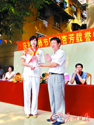 說起當(dāng)年自己的調(diào)皮事,謝杏芳笑了,“趁著教師節(jié)回來,正好給母校的恩師們送上祝福,祝愿他們節(jié)日快樂,工作順利,為祖國為廣州培養(yǎng)更多的人才!敝x杏芳的父母也被邀請(qǐng)來到現(xiàn)場,濱江中一小的不少退休老教師特地回到學(xué)?纯催@位世界冠軍,他們紛紛拉著謝杏芳的手:“阿芳,你還記得我嗎?”