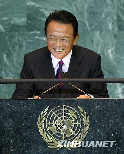 9月25日,在美國(guó)紐約聯(lián)合國(guó)總部,參加聯(lián)大一般性辯論的日本首相麻生太郎用日語(yǔ)講了幾分鐘后得知大會(huì)的日語(yǔ)翻譯未就位,臺(tái)下代表聽不懂他說什么時(shí)不禁有些尷尬地啞然失笑。當(dāng)日,第63屆聯(lián)大一般性辯論進(jìn)入第三天。新華社記者 侯俊 攝
