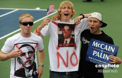 圖為支持共和黨的三名高中生在現(xiàn)場反對民主黨總統(tǒng)候選人奧巴馬。中新社發(fā) 張煒 攝