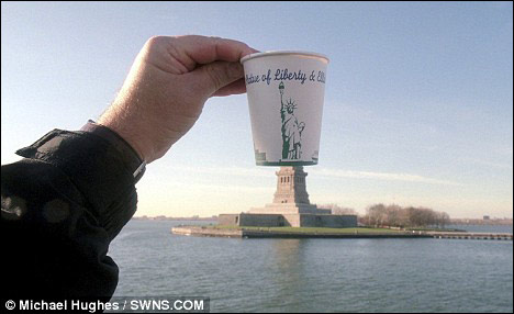 紙杯和實景結(jié)合的自由女神像