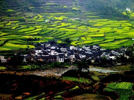 婺源山明水秀,松竹連綿,飛檐翹角的古民居蜿蜒于青山綠水,或依山,隱現(xiàn)于古樹青林之間;或傍水,倒映于溪池清泉之上;與層層梯田、繚繞云霧相映成趣,如詩(shī)如畫。四季景色各呈千秋,尤其是春秋兩季,漫山遍野的映山紅和滿山的紅楓葉猶如一簇簇火苗爭(zhēng)奇斗艷。置身于這樣的景色之中,讓你感覺(jué)到心曠神怡和留連忘返。