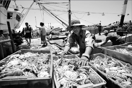 根據(jù)《中韓漁業(yè)協(xié)定》,中國漁民到韓國管轄水域從事漁業(yè)活動(dòng)的漁船,每日必須在當(dāng)日下午14:00時(shí)之前向所在縣(市)主管部門報(bào)告如下信息:作業(yè)類型、許可證號(hào)、船名號(hào)、作業(yè)起止時(shí)間、中午12時(shí)GPS上的經(jīng)緯度、前日正午12時(shí)至當(dāng)日正午12時(shí)的漁獲量!盎鶎又鸺(jí)匯報(bào)到黃渤海海區(qū)局,再專門給韓國通報(bào)。韓國一旦 發(fā)現(xiàn)有出入的地方就會(huì)扣押你!鄙垩嗥秸f:“以日志錯(cuò)誤為例,50噸以下的船要罰300萬韓元,50~80噸的罰500萬韓元,80噸以上罰1000萬韓元。如果無證作業(yè)罰得更多!