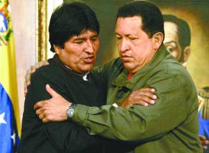 查韋斯于2001年提出“玻利瓦爾美洲國(guó)家替代計(jì)劃”,旨在加強(qiáng)拉美和加勒比地區(qū)國(guó)家間的經(jīng)貿(mào)合作和一體化,抵制美國(guó)倡導(dǎo)建立的美洲自由貿(mào)易區(qū)。該計(jì)劃目前有五個(gè)實(shí)施國(guó),分別為委內(nèi)瑞拉、古巴、玻利維亞、尼加拉瓜和多米尼加。不過(guò),多米尼加并未派遣代表參與此次會(huì)晤。