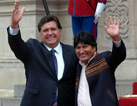 秘魯總統(tǒng)加西亞(左)與玻利維亞總統(tǒng)莫拉萊斯