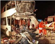 事故發(fā)生在巴西西部的朗多尼亞州境內。公車上載有35名乘客,正在前往朗多尼亞州首府的途中。兩車相撞后不久便燃起大火,一些乘客被燒死。