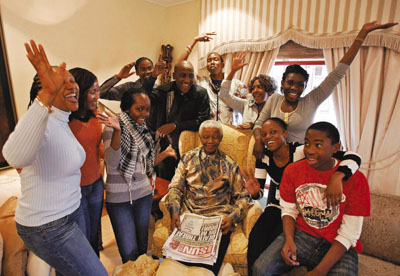 曼德拉在東角的家中舉行生日會(huì),孫子與孫女圍著他獻(xiàn)唱生日歌。