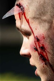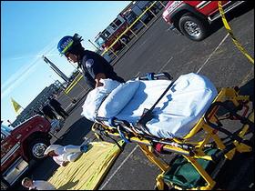 在地震中模擬傷者的志愿者。
