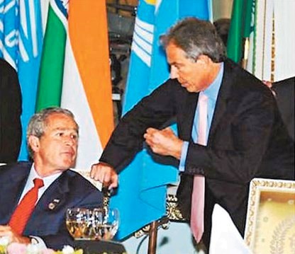 出席八國峰會時,與英國前首相布萊爾邊吃邊談,不知道桌上的話筒沒關(guān),布什提到真主黨時候,說了粗話“shit(狗屎)”