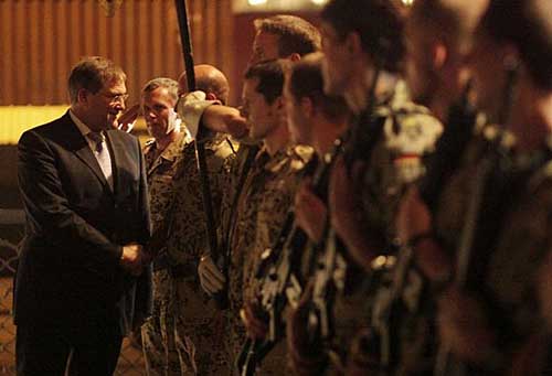 近日,德國國防部長弗朗茨·約瑟夫·容為參加歐盟領(lǐng)導(dǎo)的打擊海盜行動的德國官兵送行,此次行動德國派出了卡爾斯魯赫(Karlsruhe)號護衛(wèi)艦參與。
