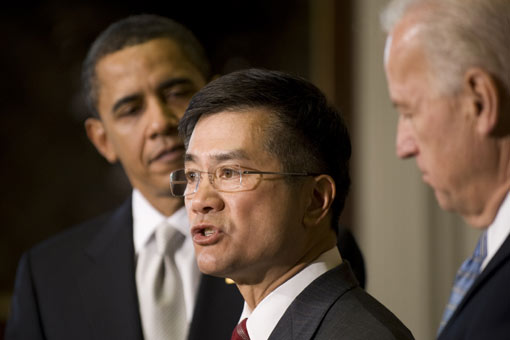 中新網(wǎng)華盛頓2月25日電 美國總統(tǒng)奧巴馬25日在白宮提名前華盛頓州華裔州長駱家輝為商務(wù)部長人選。