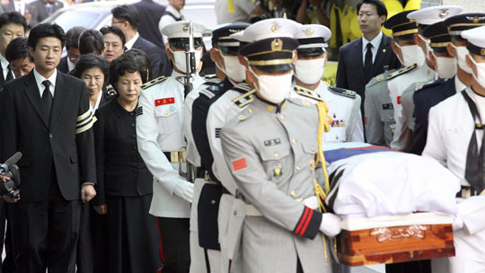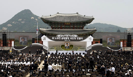 共同擔(dān)任盧武鉉葬禮委員會(huì)委員長(zhǎng)的韓國(guó)國(guó)務(wù)總理韓升洙和前總理韓明淑朗讀吊辭。