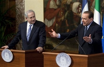在兩位領(lǐng)導(dǎo)人召開的一場持續(xù)了近兩個小時的聯(lián)合記者招待會上,貝盧斯科尼表示,意方同意內(nèi)塔尼亞胡關(guān)于建立一個非軍事化的巴勒斯坦國的看法。他表示,意大利贊同“建立這樣的國家”,正如意大利認(rèn)為以色列“應(yīng)獲得阿拉伯國家的承認(rèn)”一樣。