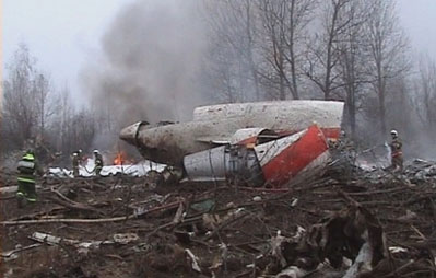 中新網(wǎng)4月11日電 綜合報(bào)道 莫斯科時(shí)間10日10時(shí)50分許,一架從波蘭華沙飛往俄羅斯的老舊的圖-154專機(jī)在俄斯摩棱斯克市墜毀,造成機(jī)上波蘭總統(tǒng)卡欽斯基和夫人以及軍方高官、政治家和宗教領(lǐng)袖共96人喪生。