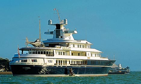 據(jù)報(bào)道,查爾斯夫婦乘坐的是英國(guó)大亨高斯林爵士?jī)r(jià)值5000萬(wàn)英鎊的豪華游艇“利安得”號(hào)。該游艇有兩個(gè)主臥和八個(gè)套房,一個(gè)能容納20人同時(shí)就餐的飯廳,一個(gè)游泳池,一個(gè)健身房,當(dāng)然最豪華的要屬一個(gè)直升機(jī)起降臺(tái)。他們還表示,乘坐游艇有利于降低二氧化碳排放。