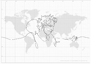 細(xì)的托運路線和順序。55天之后,這個箱子在橫跨全球6個大洲62個國家后,順利回到了起點——斯德哥爾摩,全部行程約110664公里。然后,埃里克借助電腦將GPS記錄下的路線串聯(lián)起來,繪出一幅“一筆劃的自畫像”。就在舉世驚嘆之際,他卻于日前在其官方網(wǎng)站上“不打自招”,所謂“自畫像”不過是他為完成畢業(yè)設(shè)計而虛構(gòu)出來的一場鬧!