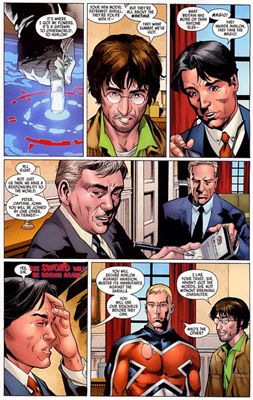 這部漫畫名為《英國隊長和軍情13處》。漫畫中,布朗成為虛擬英國情報機(jī)構(gòu)軍情13處的主管,商討對付外來入侵者的計策。所謂的入侵者,其實是一種名為“斯科魯”的神秘外星生物,它們擁有綠色的皮膚,具有隨意變身的能力,還擁有比地球人類更加先進(jìn)的科技。從漫畫中可以看到,布朗正在演講。他說:“所有英國超級英雄都在為軍情13處工作!