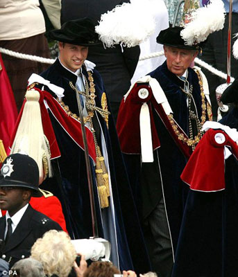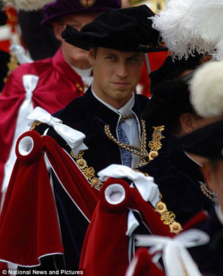 身穿騎士套裝的威廉王子看起來(lái)非常引人注目,當(dāng)他與父親、祖父以及其他騎士組成隊(duì)列走過(guò)時(shí),他的眼睛始終緊盯地面,神色顯得稍微有些局促不安。