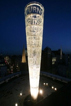 這座玻璃和鋼制成的圓錐形紀念碑位于英國廣播公司(BBC)大樓頂部,是在BBC的兩名記者早先分別在阿富汗和索馬里殉職后開始設(shè)立的。