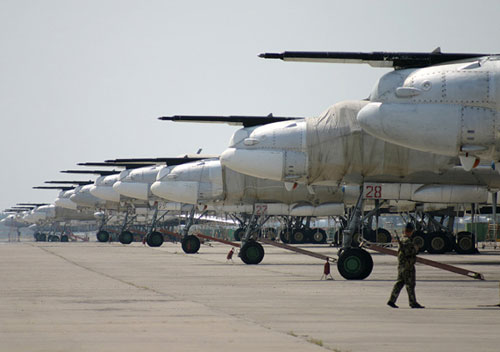 資料圖片:俄羅斯圖-95熊式戰(zhàn)略轟炸機群