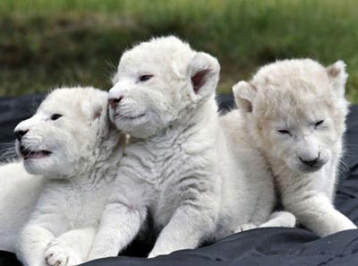 該動物園的兩只母白獅6月30日同時產(chǎn)下總共7只小白獅。7只小白獅4只為雄性,3只為雌性。但是其中一只母獅拒絕喂養(yǎng)自己的4只小獅子,因而動物園的管理員飼養(yǎng)了這些可愛的小家伙。