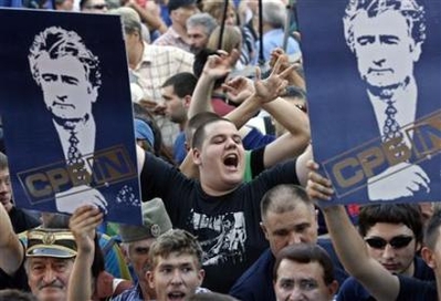 塞爾維亞激進(jìn)黨組織抗議集會(huì)支持卡拉季奇。