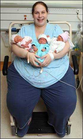 剖腹手術(shù)要做得特別精確小心,整個過程耗費不少人力,特制鋼質(zhì)手術(shù)臺需要5位助產(chǎn)士、4個外科醫(yī)生、4個麻醉師及12個嬰兒顧問和護士等,共68人助陣。她只能麻醉下半身,因全身麻醉可能致命;其胃部亦要提起,以騰出更多空間取出嬰兒。最后她順利誕下2名各重4磅多的女兒,和一名5磅多的兒子,當然這次重量級的生產(chǎn)也是耗資不菲,花了20萬英鎊,是正常費用的4倍。