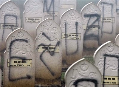 在法國東北部阿拉斯附近NOTRE-DAME-DE-LORETTE的法國最大軍人公墓里,有大約500多座墓碑被人涂上了納粹德國標志和反穆斯林的口號。
