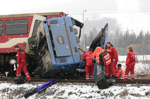 中新網(wǎng)布拉格2月21日電 一輛帶有兩節(jié)車廂的客運列車21日上午在斯洛伐克中部小村莊波羅姆卡-布雷茲諾一處沒有設(shè)置柵欄的路口以70公里時速撞上一輛載有37名旅游者和滑雪者的公共汽車,造成車上人員至少12死20傷。