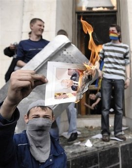 據(jù)臺灣《中國時(shí)報(bào)》引述法新社報(bào)道,成千上萬民眾參加當(dāng)日的抗議集會,剛開始時(shí)和平進(jìn)行,其后出現(xiàn)暴力,抗議民眾丟擲石塊攻擊共黨總統(tǒng)沃羅寧的行政大樓。
