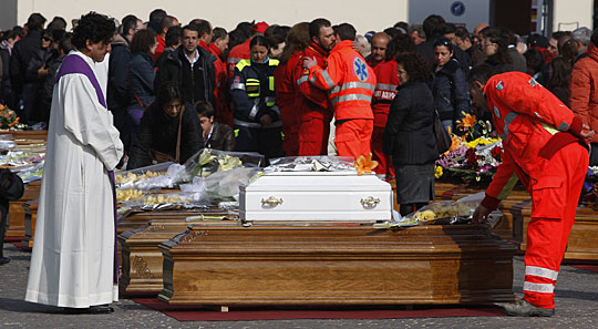 中新網(wǎng)4月10日電 綜合外電報道,當(dāng)?shù)貢r間上午11點(diǎn)左右(北京時間17點(diǎn)左右),意大利為近300名地震的罹難者舉行國葬。教宗本篤十六世為葬禮捎去信息,希望幸存者能夠?qū)ⅰ皥詮?qiáng)繼續(xù)”。