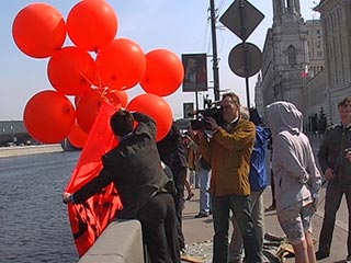 據俄羅斯新聞網報道,俄羅斯反對黨“團結運動”組織成員4月28日在克里姆林宮前舉行了聲勢浩大的反政府游行活動。期間,3名“團結運動”的積極分子在克里姆林宮附近的河岸邊懸掛紅色的巨型橫幅,上面印有:“梅德維杰夫,辭去普京總理職務!弊謽樱瑱M幅兩邊系有紅色的氣球,橫幅下部印有“團結運動”組織的徽標。