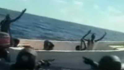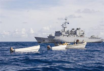 據(jù)英國媒體報(bào)道,5月4日,法國海軍將抓獲11名索馬里海盜的錄像公布于眾。法國海軍在塞舌爾島以外海域俘虜11名索馬里海盜。當(dāng)時(shí),這些海盜蔣法國軍艦誤認(rèn)為是商船。據(jù)報(bào)道,事實(shí)上,海盜們想襲擊的是參與歐盟打擊海盜行動(dòng)、在當(dāng)?shù)睾S蜓策壍姆▏鴮?dǎo)彈護(hù)衛(wèi)艦“雪月號(hào)”。