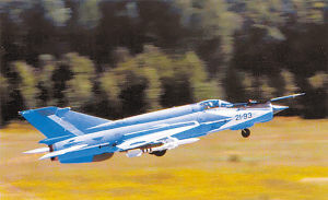 米格-21是根據(jù)朝鮮戰(zhàn)爭(zhēng)中噴氣戰(zhàn)斗機(jī)的空戰(zhàn)經(jīng)驗(yàn)研制而成,其飛行速度為2馬赫——聲速的2倍,輕巧靈活。