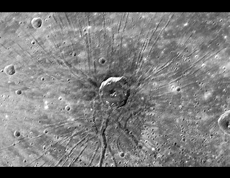 中新網(wǎng)1月31日電 據(jù)美國媒體報(bào)道,美國宇航局最近公布了“信使號(hào)”飛行器拍下的水星另一半球的圖片,其中包括一個(gè)被科學(xué)家們稱作“蜘蛛”狀地貌的圖片,這個(gè)地貌看起來是一個(gè)撞擊坑,中心周圍的表面有50多條裂紋。