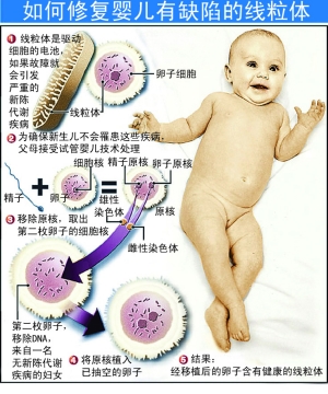 這項研究的重點是卵子細胞中的線粒體。線粒體游離于細胞質(zhì)中,是細胞進行呼吸作用的場所,有細胞“動力工廠”之稱。嬰兒胚胎中的線粒體遺傳自卵子細胞,如果母體線粒體本身有基因缺陷,新生兒就易出現(xiàn)肌肉萎縮、癲癇、中風(fēng)、糖尿病、失聰、失明、肝功能衰竭和智力發(fā)育遲緩等各類疾病。