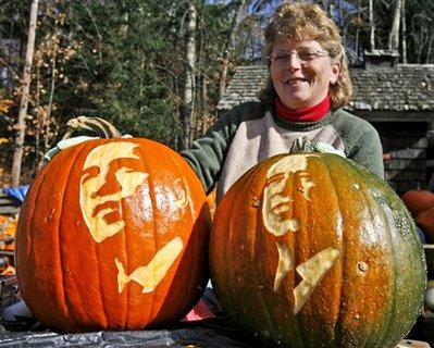 今年恰逢美國(guó)大選年,美國(guó)總統(tǒng)候選人奧巴馬和麥凱恩的造型受到了南瓜雕刻愛好者的追捧。另外,還有美國(guó)商家趁機(jī)雕刻了上千只造型各異的南瓜,等待萬(wàn)圣節(jié)時(shí)擺上柜臺(tái)。