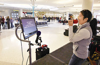美國機場設卡拉OK 乘客等待登機時打發(fā)時間(圖)