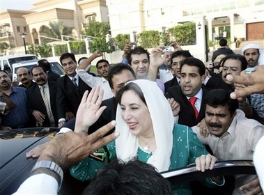 巴基斯坦總統(tǒng)穆沙拉夫希望在選舉中得到布托政黨的支持。兩人后來達成協(xié)議,當(dāng)局終止對布托貪污罪名的指控。另一方面,巴基斯坦最高法院今年8月裁決,被政變趕下臺并流亡國外的前總理謝里夫可以回國。