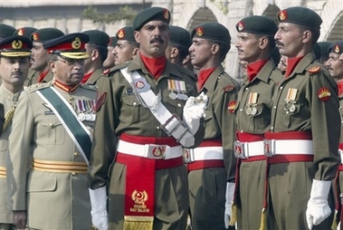 據(jù)報道,當(dāng)穆沙拉夫抵達(dá)拉瓦爾品第的巴基斯坦陸軍總部時,約由150名巴基斯坦海陸空軍組成的儀仗隊接受了他的檢閱。在軍樂隊奏起的巴基斯坦國歌聲中,身著軍裝,外披綠白色綬帶,胸前懸掛一排勛章的穆沙拉夫在陸軍總部的閱兵廣場上最后一次檢閱了部隊。