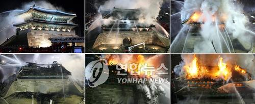 韓國(guó)第一號(hào)國(guó)寶“崇禮門(mén)”燒毀塌落損失慘重(圖)