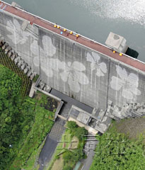 中新網(wǎng)7月28日電 在不用清洗劑只用水的情況下沖刷大壩表面污垢作畫的日本第一件“環(huán)保藝術(shù)品”28日在栃木縣足利市松田川水壩完成,5朵白色的杜鵑花呈現(xiàn)在人們眼前。