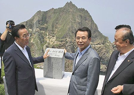 韓升洙當(dāng)天上午抵達(dá)獨(dú)島,在獨(dú)島設(shè)置了一塊長(zhǎng)32公分、寬22公分的標(biāo)石,上面刻有“東海上的韓國(guó)領(lǐng)土獨(dú)島”字樣。